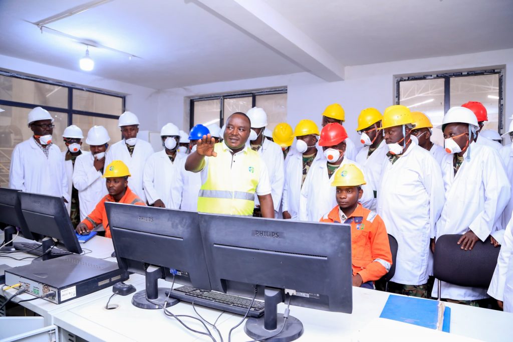 Abo bashitsi barangirije urugendo rwabo mu ruganda, baraba uko ifumbire zihingurwa,n’uko uruganda rwagiye ruraguka.